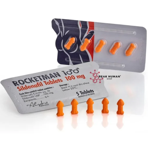 Alpha Pharma Rocketman contains Sildenafil 100 mg per tablet, formulated to support male sexual health. Each pack contains 5 tablets.